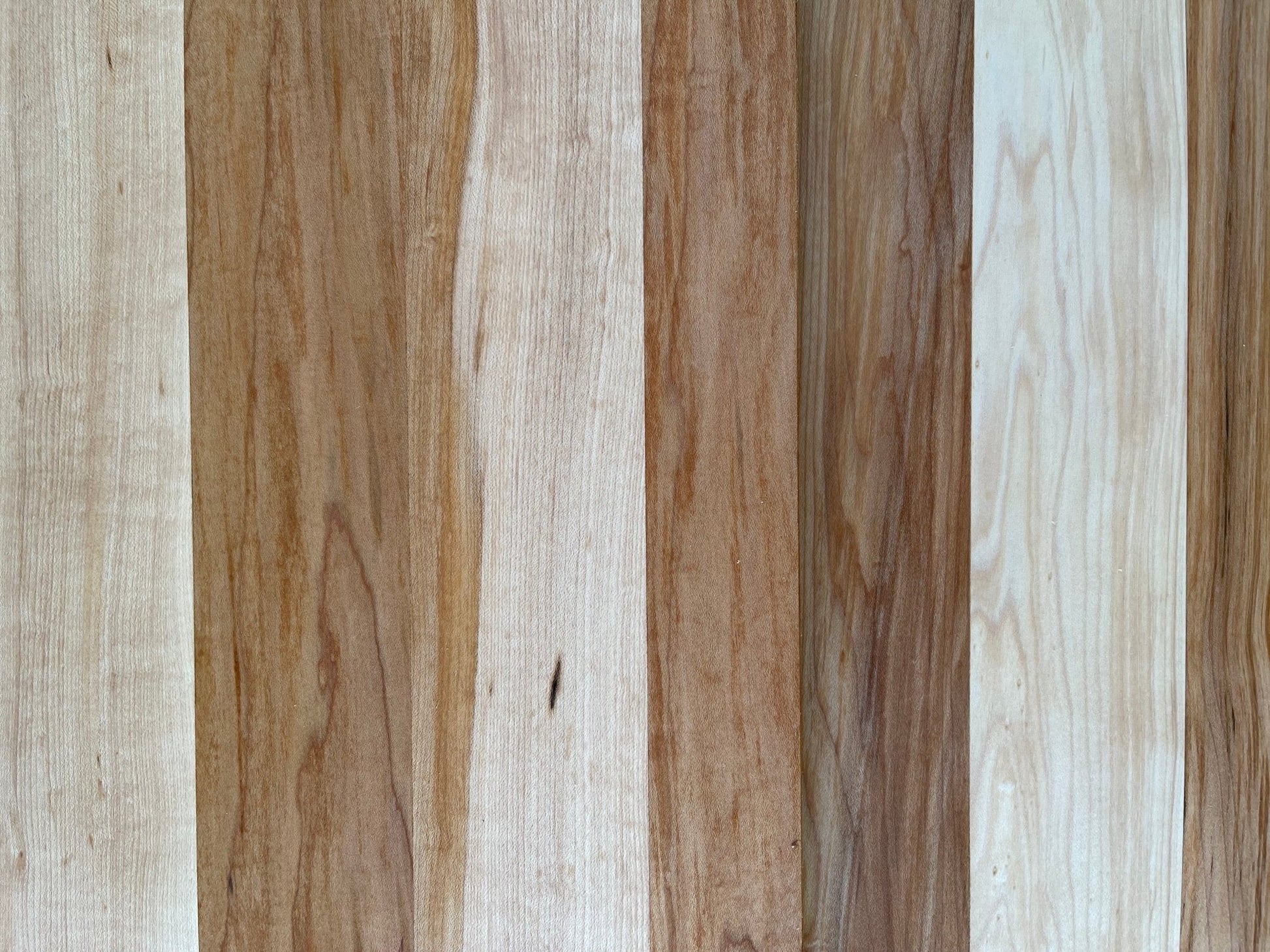 Our charcuterie boards are made from reclaimed American Maple sawmill boards that are cut, cleaned and then joined together to make a beautiful opposing grain pattern (No really, we have a sawmill/stock provider up the road). They are made in vintage/antique style in our wood shop. They vary in thickness from 1/2" to 3/4".