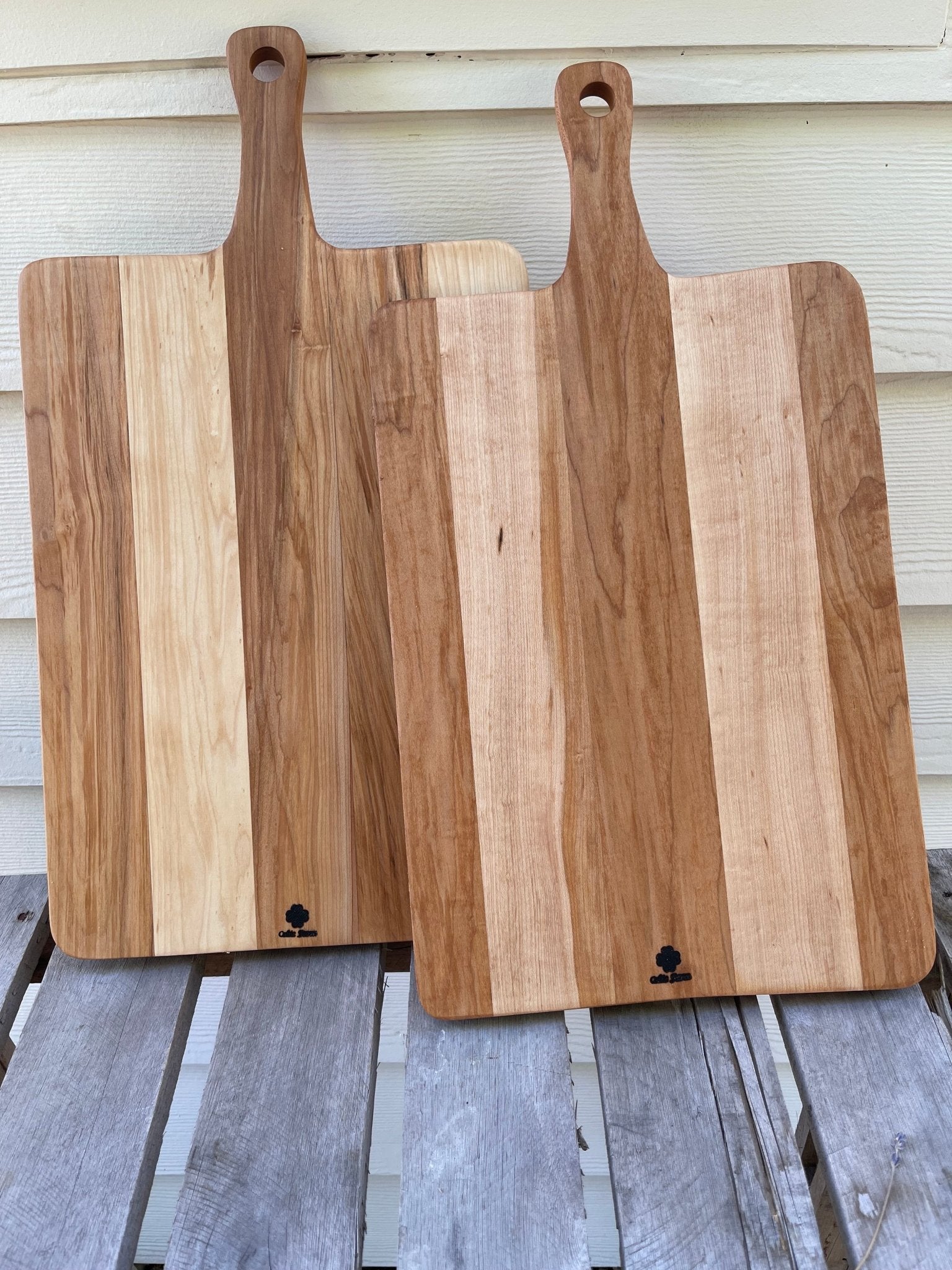 All boards have a 6" handle, and a hole for hanging. PLEASE NOTE: These are handmade, with hand tools. They are not perfect factory produced boards, and will all have a bit of "character". Because of the handmade nature, all boards will be unique and differ from the images shown here in some way.